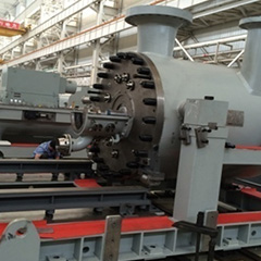 EBZ系列筒式離心壓縮機(jī)用于石油、化工等工業(yè)領(lǐng)域,用于輸送空氣、混合冷劑等高壓、有毒、易燃易爆等介質(zhì)。外缸為整體筒形,屬于多級(jí)、高速、雙支承結(jié)構(gòu),帶中間冷卻器。 可通過變速器由電機(jī)驅(qū)動(dòng)或直接由高速汽輪機(jī)或電機(jī)驅(qū)動(dòng)。 機(jī)型涵蓋共計(jì)10個(gè)機(jī)型,流量覆蓋范圍從20~2200m 3/min,排氣壓力最高可達(dá)15MPa。 采用系列化設(shè)計(jì)及高效三元流葉輪,對模型級(jí)進(jìn)行合理匹配,在實(shí)現(xiàn)不同壓比的客戶需求時(shí),保證壓縮機(jī)效率。 該壓縮機(jī)檢修維護(hù)時(shí),可直接將轉(zhuǎn)子和內(nèi)定子抽出檢修,無需拆卸管路。壓縮機(jī)內(nèi)缸帶有水平分型面,維護(hù)檢修方便。 進(jìn)排氣風(fēng)筒可靈活設(shè)計(jì),管口位置可根據(jù)工藝管位置而設(shè)定。 該系列壓縮機(jī)采用成熟可靠的模型級(jí)和先進(jìn)的氣動(dòng)計(jì)算程序,經(jīng)機(jī)組現(xiàn)場運(yùn)行驗(yàn)證和評(píng)估,達(dá)到了國際先進(jìn)水平。 -